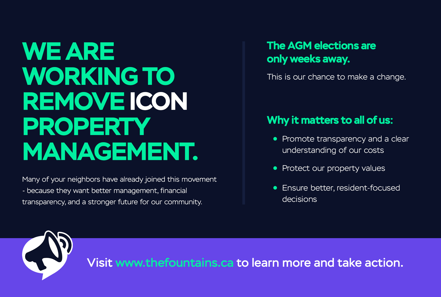 If you’re a tenant, you’re part of this story as well. You may not have a direct vote, but your voice carries weight. Talk to your landlord. Let them know about our movement and why it matters. One of our key goals is to control rising condo fees. Lower fees for owners mean more stable rents and less risk of increases in the years ahead. Your support could be the spark that inspires your landlord to submit their proxy and add one more vote for change.